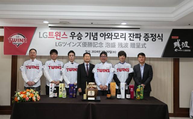 일본 오키나와현과 아와모리주를 제조하는 히가주조, 쿠마가이 주류회사가 LG 트윈스의 2023 통합우승을 축하하고 올 시즌 우승을 기원하며 아와모리주를 LG 트윈스에 증정하는 증정식 행사를 지난 20일 코리아나 호텔에서 진행했다.