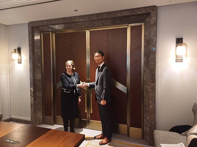 | ▲ 루시 채플(Lucy Chappell) NIHR 최고경영자(사진 왼쪽)와 김현철 한국보건사업진흥원 연구개발혁신본부장이 2일 서울에서 열린 한국 보건복지부와 영국 DHSC 간에 개최된 '한-영 보건 대화'에서 '보건의료 연구협력 파트너십'을 맺고, 그 첫 번째 시도로 '스마트 임상시험' 분야에서 파트너십을 추진하기로 했다. |