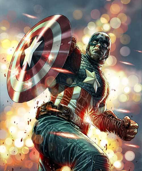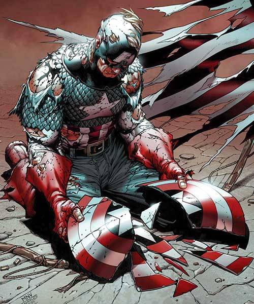 닥터 둠이 외계인 비욘더의 능력을 빼앗아 신적인 능력을 얻었을 적에 캡틴의 방패를 파괴했다. 나중에 비욘더가 능력을 되찾았을 때 캡틴은 방패를 고쳐달라는 소원을 말해서 방패는 다시 멀쩡해졌다.