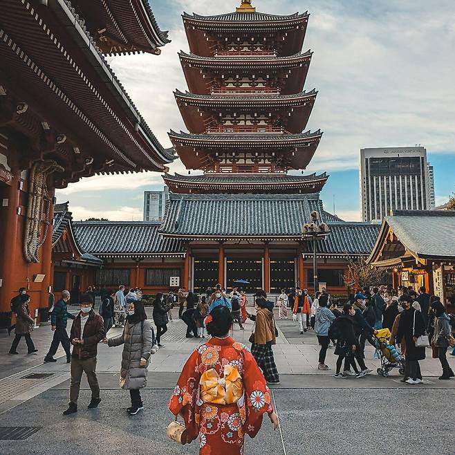 645년 승려 ‘쇼카이’에 의해 관음당이 세워졌고, 오랜 시간이 흐른 뒤 1950년대 재건축을 거쳐 지금의 모습을 갖추게 되었죠. 매년 3천만 명의 인파가 찾을 정도로 유명한 도쿄 볼거리이며, 많은 관광객들이 기모노를 입고 일본의 전통 문화도 즐깁니다.