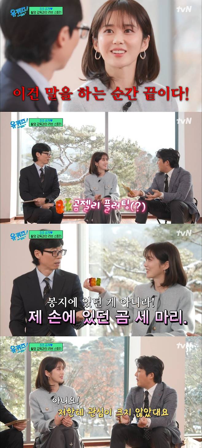 한 번은 촬영 현장에서 하리보 곰젤리 세 마리를 주며 플러팅을 시도했지만 남편은 눈치채지 못했다.