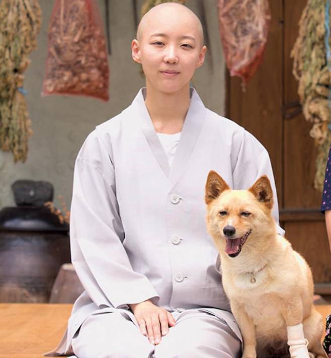 공개된 ‘문경’ 포스터는 ‘2인 1견’ 문경과 스님 가은, 앞발에 붕대를 한 강아지 길순이의 조화가 인상적이다. 처마 아래 널린 시래기와 장독대에서 정겨움이 감도는 시골집 평상에 앉아 은은한 미소를 띤 모습만으로도 차분하고 무해한 분위기가 느껴진다.