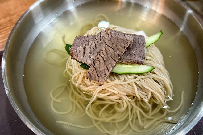 [리뷰타임스=윤지상(수시로) 기자] 한국 사람이라면 시원한 음식으로 첫손가락에 꼽는 냉면. 최근에는 심심한 육수와 면으로 모두의 입맛을 사로잡는 평양냉면에 관심이 많다. 주 활동 무대인 홍대, 합정, 망원과 신촌 일대에도 전통적인 혹은 새로운 스타일의 차가운 면 요리가 많은데 오늘은 그중에서 평양냉면 중 극과 극을 보여주는 두 곳을 소개할까 한다.