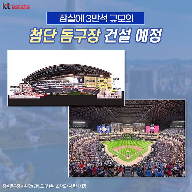 이에 앞서 서울시는 지난해 9월 발표한 ‘잠실 스포츠·마이스(MICE) 복합단지 개발사업’에서 기존 잠실야구장 자리에 돔구장을 새로 짓겠다는 내용을 제시한 바 있는데요. 해당 돔구장을 국제경기 유치가 가능한 3만 석 이상의 국내 최대 규모의 야구장으로 지을 예정입니다. 또한, 내외〮야를 순환하는 360도 개방형 콘코스(관중석과 연결된 복도 공간)와 스카이박스, 필드박스 등 각종 프리미엄 석도 도입할 것으로 알려졌습니다.