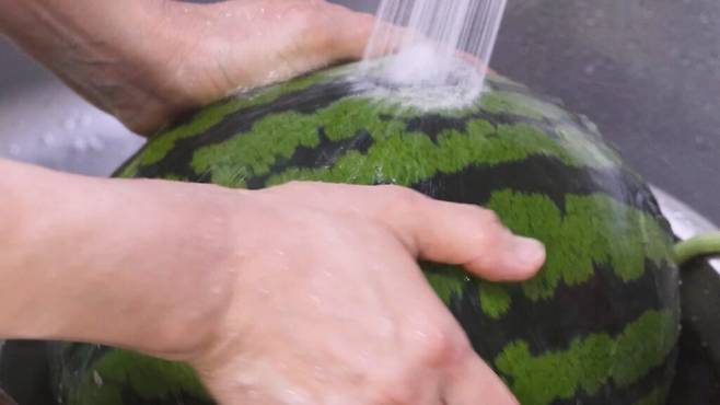 사온 수박 껍질에는 균이나 더러운 이물질이 많이 있습니다. 반드시 자르기 전 수박을 흐르는 물에 깨끗이 씻어 주세요.