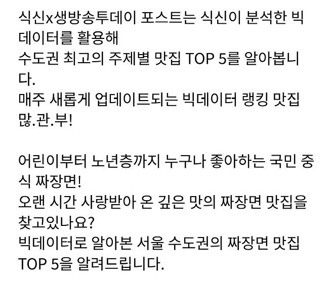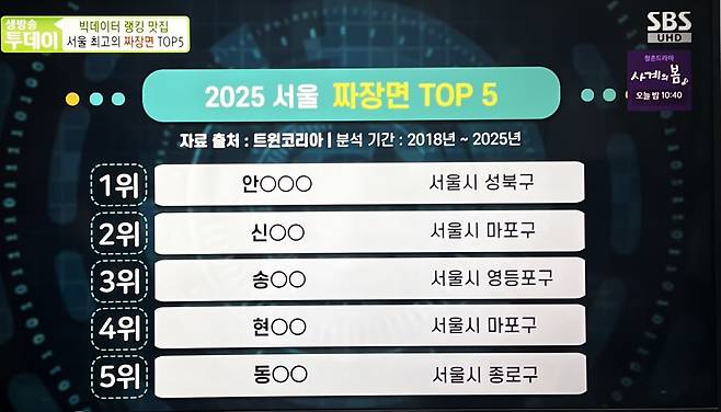 서울 짜장면 맛집 TOP5 (생방송투데이)