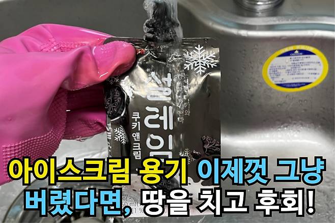 이대로 수박 조각을 용기에 쏟아부으면 손질이 끝납니다. 도마 위에서 하나씩 자르지 않아도 돼서 훨씬 편하고 빠릅니다.