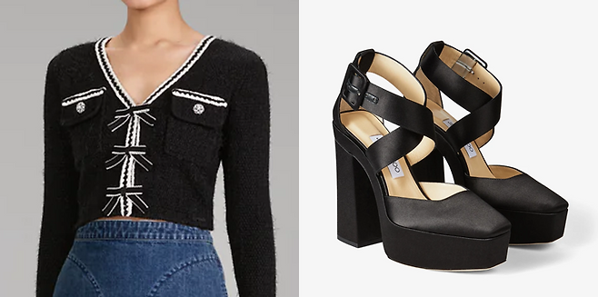 지수가 입은 가디건은 셀프 포트레이트의 제품으로 판매가 약 36만 원이며, 구두는 지미추의 제품으로 약 136만 원대인 것으로 확인되었습니다.