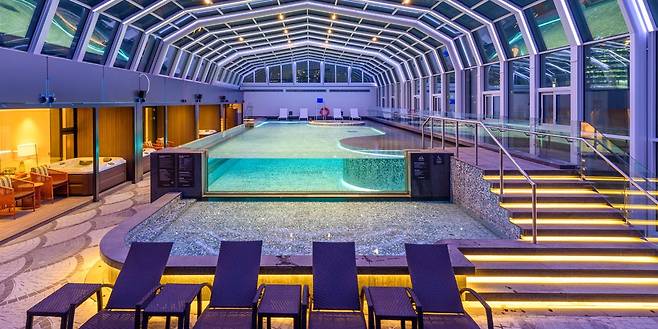 개폐식 돔으로 되어 있어 비가 오거나 흐린 날에는 돔을 닫고 이용하는 것이 특징이에요. 따뜻한 물로 힐링할 수 있는 자쿠지 2개가 마련되어 있습니다. 자유롭게 썬베드를 이용할 수 있으니 휴식 또는 풀사이드바까지 즐겨보세요.
