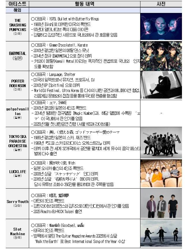 -스매싱 펌킨스, 베이비메탈 등 세계적인 아티스트 20개 팀 참여