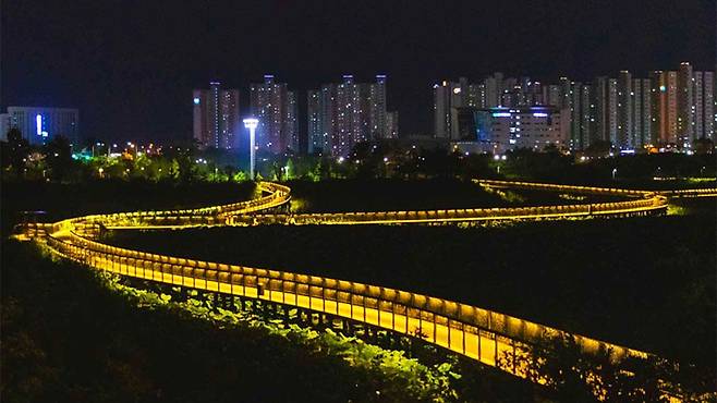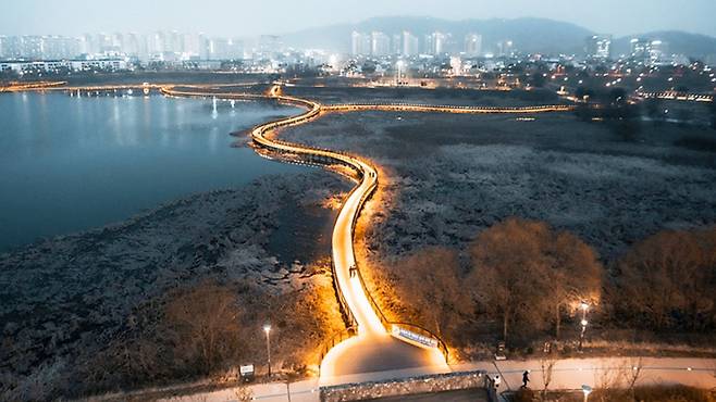 중간중간 놓인 벤치와 그늘막은 잠시 쉬어가기 좋은 포인트이며, 특히 해질 무렵이면 데크 위에 붉게 물든 하늘과 호수가 어우러진 장면이 장관을 이룹니다.