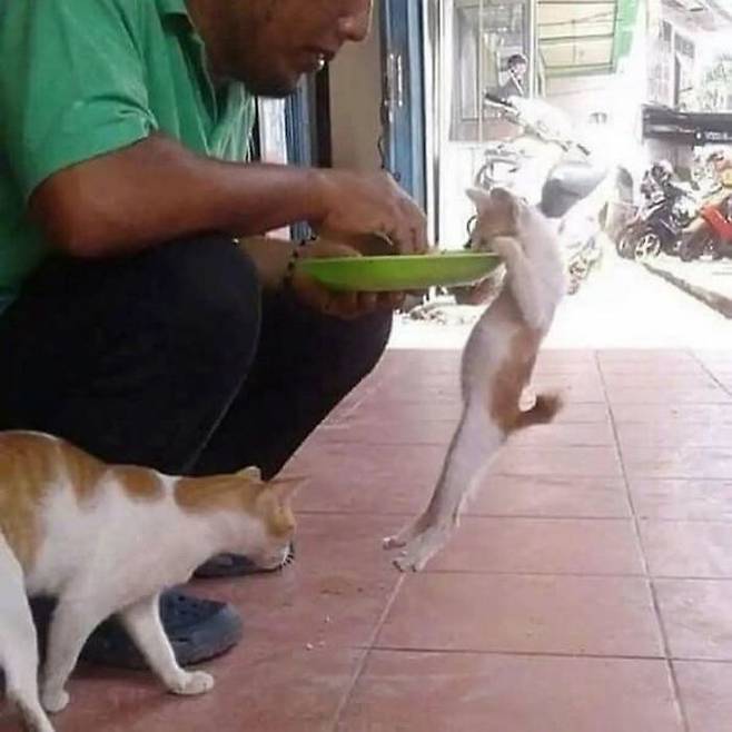 한국인은 밥심이라는 말이 있는 것처럼 고양이에게도 밥이 중요한데요. 어떻게 해서든 밥을 먹겠다며 매달려 있는 모습이 왜 이렇게 귀여운가요.