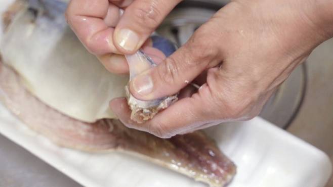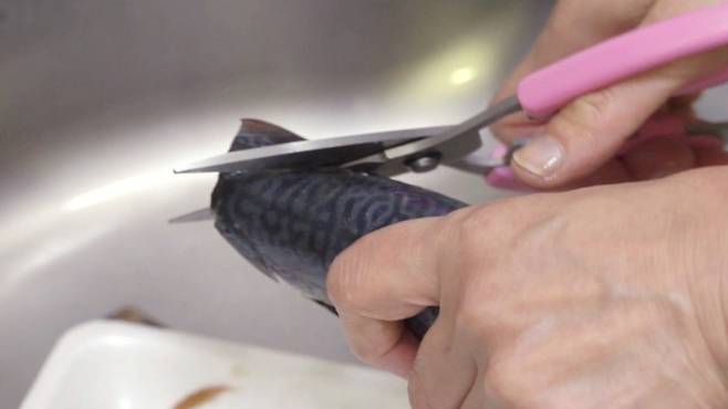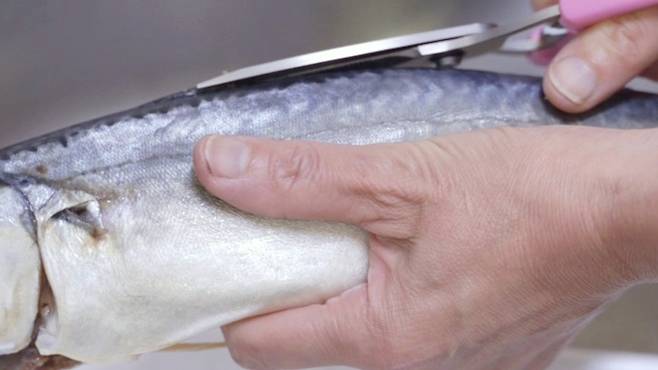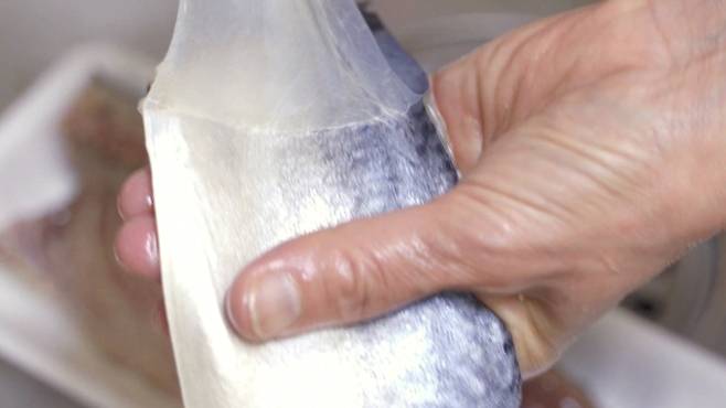 바로 고등어의 비늘막을 제거하는 것인데요. 고등어를 보면 비늘막이 감싸고 있는 것을 볼 수 있어요. 소금 한 꼬집을 활용해 비늘막을 떼어내면 아주 손쉽게 제거할 수 있는데요.