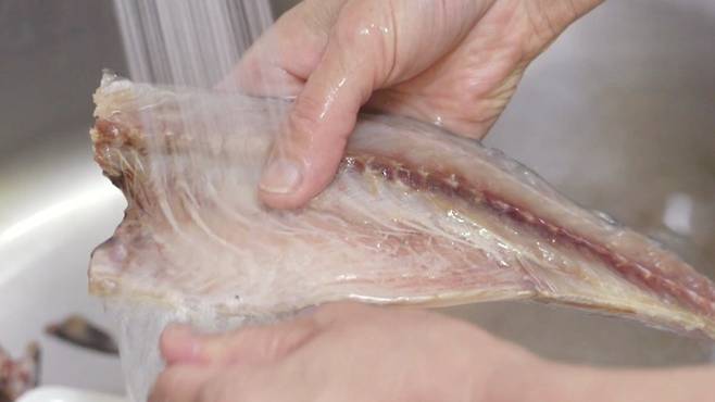 그리고 고등어를 물에 깨끗이 씻은 후, 물기를 완전히 잘 제거하세요.