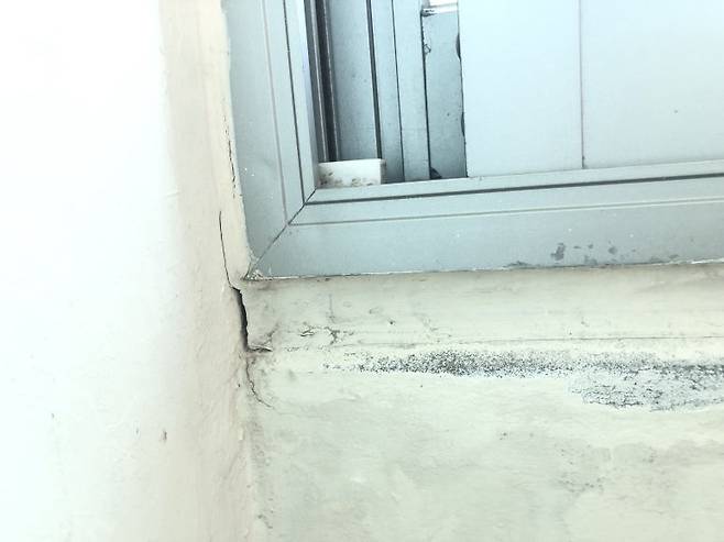 아파트 베란다 창틀을 보면 코너 부분이 깨져 있는 경우가 있어요. 창틀 설치 시공 과정에서 훼손됐을 수 있고, 사람이 거주하면서 훼손됐을 수도 있죠.