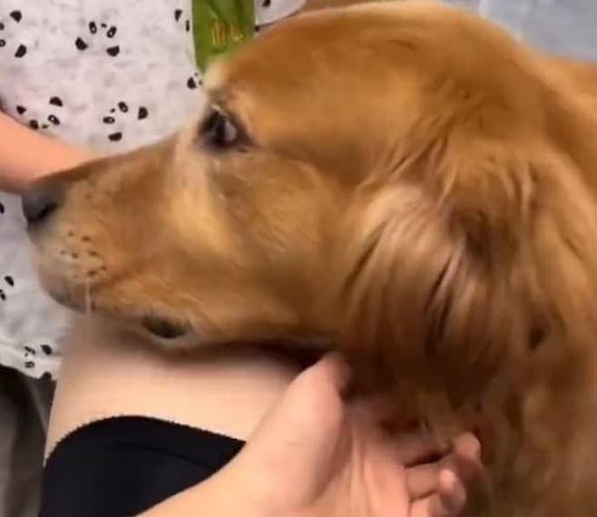 아들은 엄마의 꾸중에 서러워서 울었는데요. 그때 한집에 같이 사는 골든 리트리버 강아지가 우는 아들에게 다가가는 것이었습니다.
