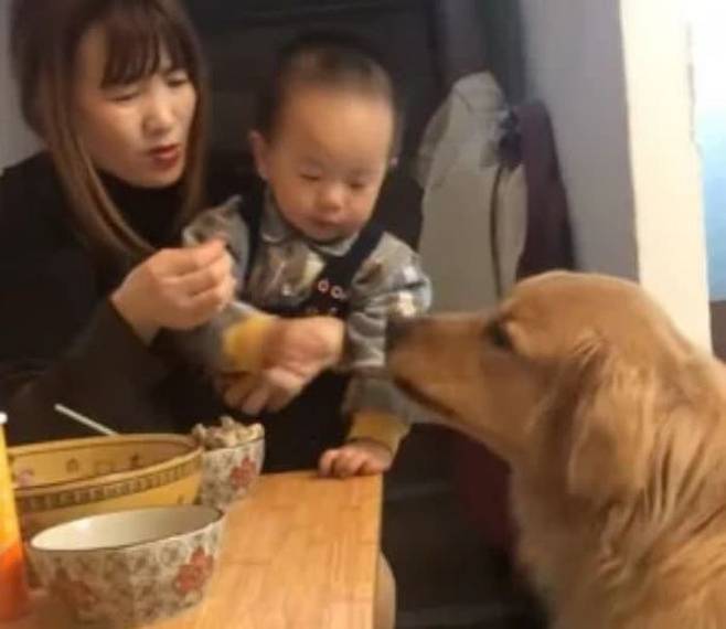 아이가 울자 꾸중한 엄마에게 항의하는 리트리버 강아지. 평소 아이와 얼마나 두터운 애착이 형성되었길래 그러는 걸까요. 역시 강아지는 아이를 지켜주려고 하늘에서 내려온 천사인가 봅니다.