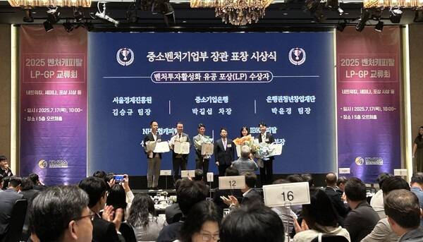 한국벤처캐피탈협회(VC협회)가 17일 서울 서초구 엘타워에서 개최한 ‘2025 벤처캐피탈 LP-GP 교류회’의 세미나에서는 국민연금을 비롯한 연기금의 벤처투자 시장 유입이 늘어날 것이라는 전망이 제시됐다. 이날은 국내 주요 출자기관(LP)과 운용사(GP)가 한자리에 모인 가운데 벤처투자 활성화 LP 유공 포상 시상식과 세미나가 이어졌다.
