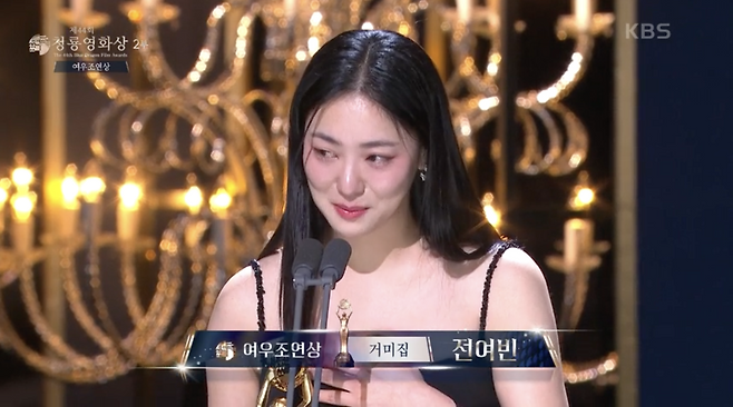드라마 <빈센조>(2021)로 대중성과 영화 <낙원의 밤>(2021)으로 장르성을 입증한 전여빈은 2023년 <거미집>으로 청룡영화상 여우조연상을 수상한다. 하지만 더 화제가 된 건 트로피보다 그의 수상소감이었다. “중요한 건 꺾여도 그냥 하는 마음”, 즉 ‘중꺾그마’라는 신조어처럼, 꺾여도 괜찮다는 믿음의 메시지를 담았다. “너 자신을 믿는 게 재능이지”라는 영화 속 대사를 인용하며, 그는 ‘스스로를 믿는 것’의 소중함을 전했다. 응원은 늘 남에게만 하는 것이 아니라, 자기 자신에게도 필요한 일이라는 깨달음. 그 소감은 많은 이들의 가슴을 울렸고, SNS를 통해 널리 퍼졌다. 무대 위에서 말한 그의 진심은 단순한 수상 소감이 아닌, 이 시대 청춘들에게 보내는 따뜻한 편지였다.
