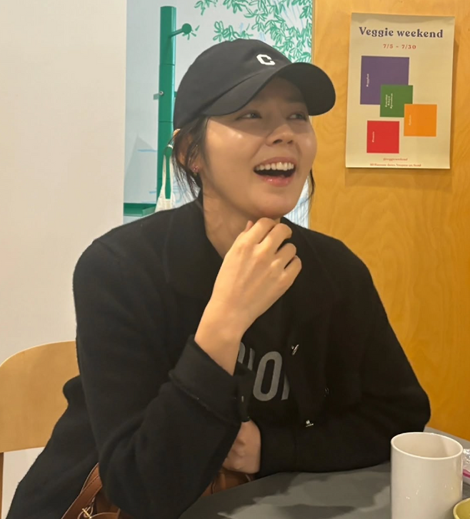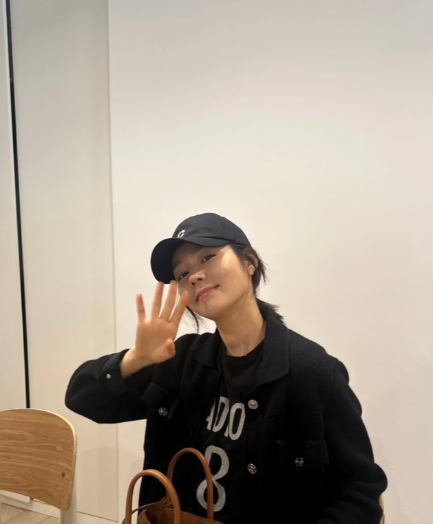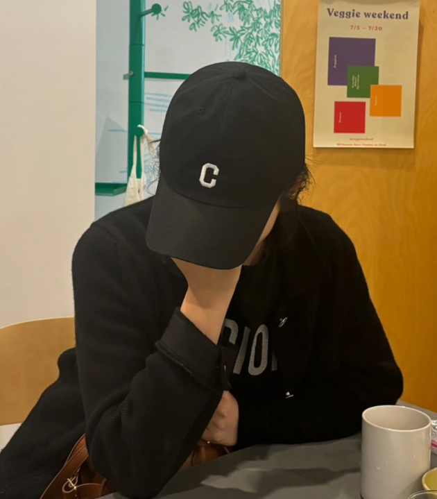 한가인 님은 블랙 컬러의 베이식한 볼캡을 착용해 꾸미지 않은 듯 내추럴한 분위기를 연출했어요. 자연스럽게 흘러내린 머리와 함께 내추럴한 분위기를 살렸어요.