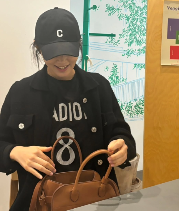가방은 한가인 님이 자주 드는 ‘더로우’ 브랜드의 핸드백을 선택했어요. 미니멀한 디자인과 고급스러운 브라운 컬러가 특징으로, 어떤 룩에도 자연스럽게 어울리는 활용도 높은 아이템이에요. 실용적이면서도 세련된 감각이 돋보였어요.