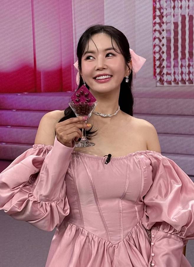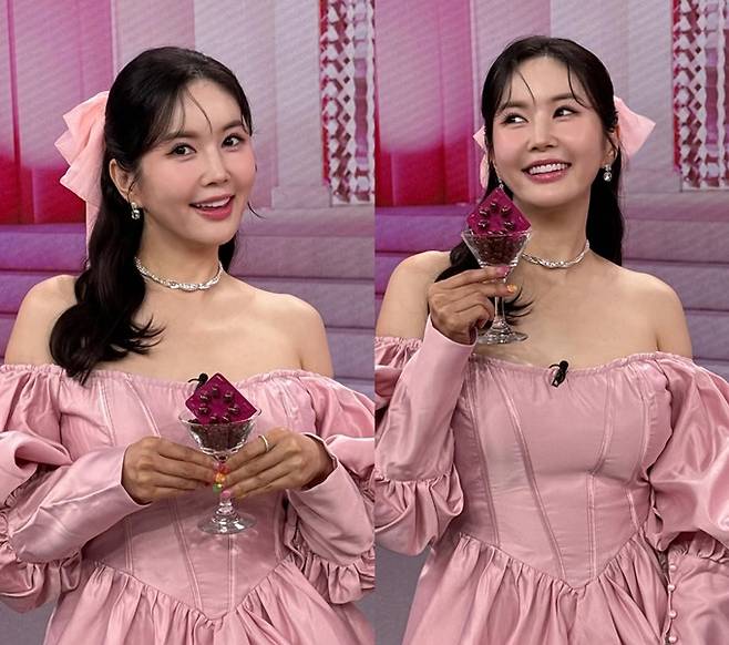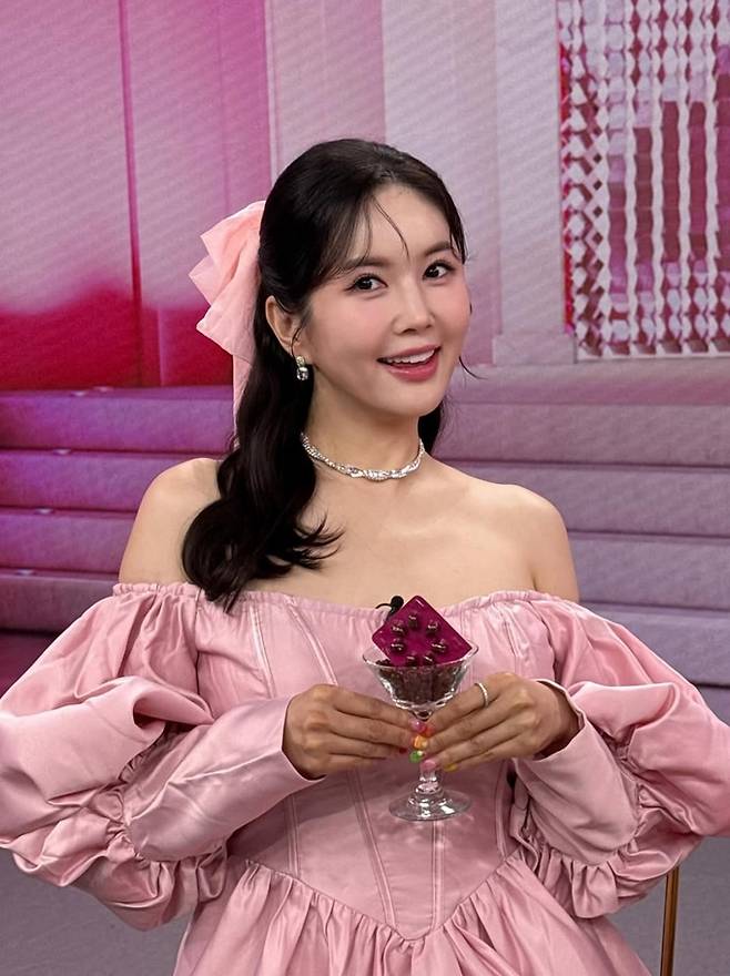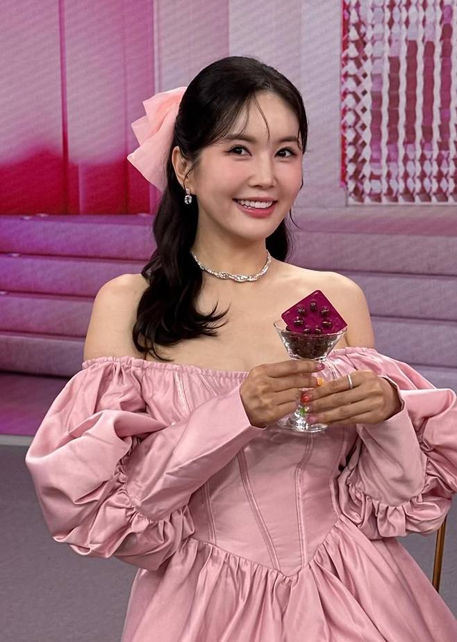 장영란은 24일 자신의 채널에 “핑크핑크해”라는 글과 함께 방송 출연 관련 사진을 게재했다.