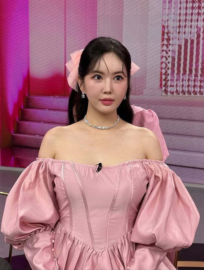 방송인 장영란이 쇄골 라인이 드러난 오프숄더 핑크 드레스룩으로 러블리한 귀부인 자태를 뽐냈다.