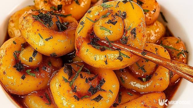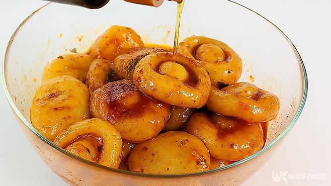 양념장에 익힌 감자를 넣고 조심스럽게 비벼준다. 비빈 후엔 들기름 한 숟갈을 둘러 코팅 해주면, 감칠맛이 오래 유지된다. 냉장고에 잠시 넣었다가 차갑게 먹으면 더 맛있다. 상온에 뒀다가 먹으면 양념이 더 깊이 배어든다.