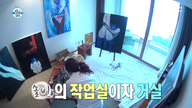 지난 2017년 4월 MBC '나혼자산다'를 통해 솔비의 작업 모습이 공개되어 큰 화제가 되었는데요. 솔비는 속초의 한 호텔에 머물며 음악과 미술 작업을 하며 자유롭게 지내고 있었습니다. 당시 솔비는 자신의 전시를 보고 감명받은 호텔 관계자가 작업실로 쓰도록 배려한 호텔 객실에서 머무르고 있었는데요.