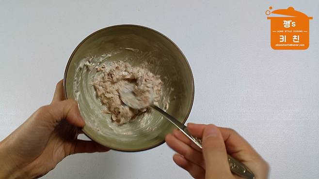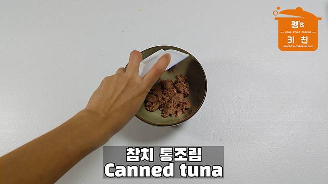 참치 통조림은 기름을 빼고 준비합니다