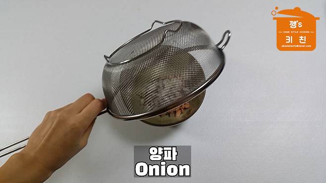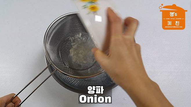 물에 담가뒀던 양파의 물기를 빼주세요