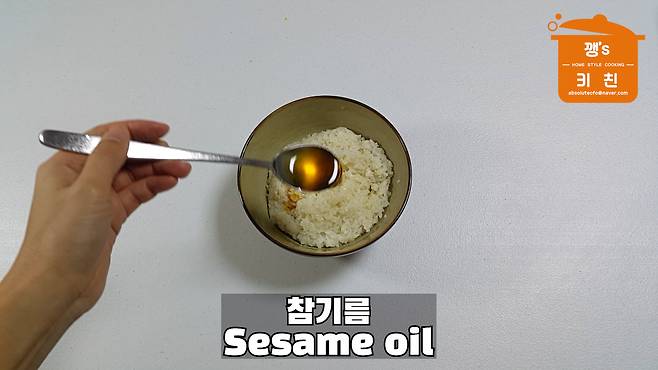 밥에 참기름 1큰술을 두르고