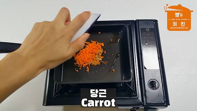 다진 당근을 넣고 살짝 볶아주세요