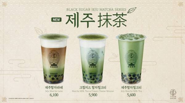 타이거슈가코리아는 제주도 말차를 활용해 만든 신제품 ‘말차 3종 시리즈’를 출시했다. 녹차보다 더욱 진하고 깊은 맛을 자랑하는 강렬한 초록 색감의 말차로, 음료는 물론 달콤한 디저트에도 잘 어울리는 메뉴다. 특히 많은 사랑을 받는 메뉴가 ‘제주 말차 밀크티’로, 제주 말차의 진함과 타이거슈가 특제 흑당 단맛이 만나 진한 풍미를 선사한다. 매장 판매가는 5,600원이다.