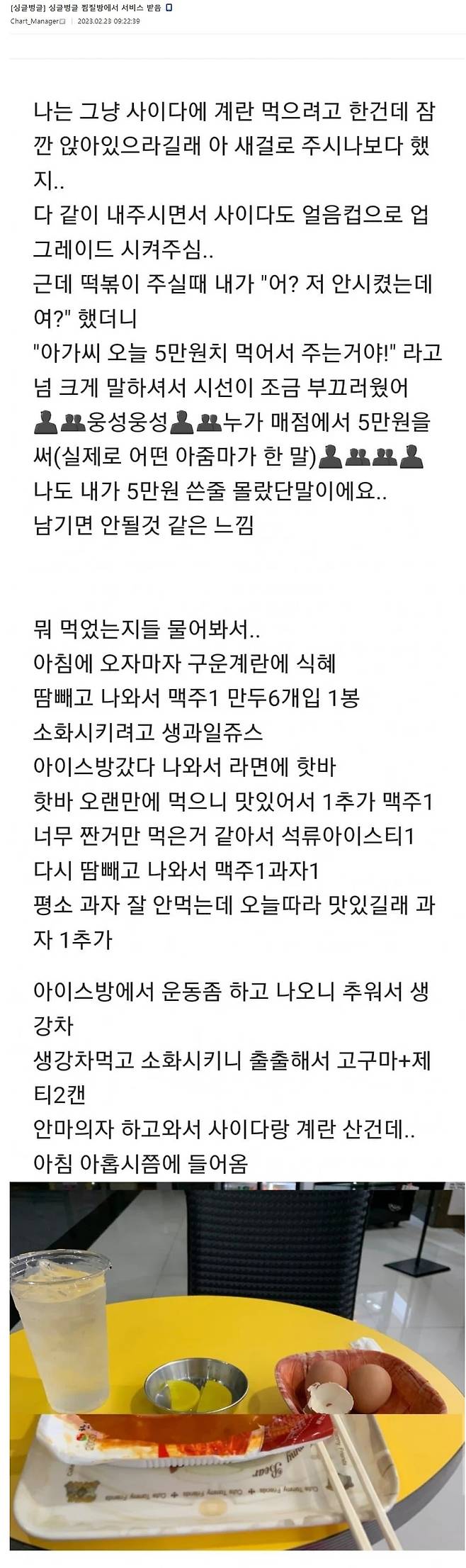 찜질방에서 5만원 어치 음식 먹은 썰