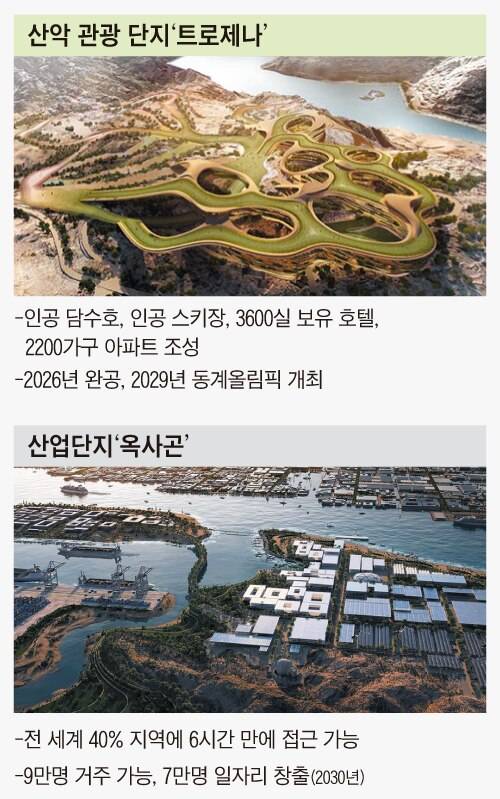 네옴 시티는 더라인 외에도 초대형 부유식 산업단지 ‘옥사곤’과 중동에서 스키를 즐길 수 있는 산악관광단지 ‘트로제나’까지 규모가 어마어마해 항만·공장·에너지·관광시설 건설부터 스마트시티에 필요한 통신·로봇·소프트웨어 등 다양한 분야에서 수주전에 참여할 수 있다. 원희룡 국토부 장관도 “올 12월이나 내년에는 우리 기업들이 사우디에서 대형 프로젝트를 수주하게 될 것”이라고 말했다.