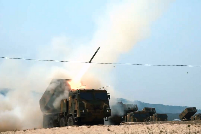 천무 3.0의 정체는 바로 현대 전장의 대세가 된 자폭 무인기를 로켓과 미사일로 날려보내는 형태의 새로운 무기체계인데요.
