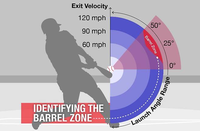 '세이버 선구자' 톰 탱고는 안타를 위한 최적의 발사 각도는 12도라고 전했다. 그리고 홈런을 위한 최적의 발사 각도는 28도라고 덧붙였다. 이를 바탕으로 탄생된 용어가 '배럴 타구'다. 타구 속도와 발사 각도가 가장 이상적인 조화를 이뤘을 때 생산되는 타구다.