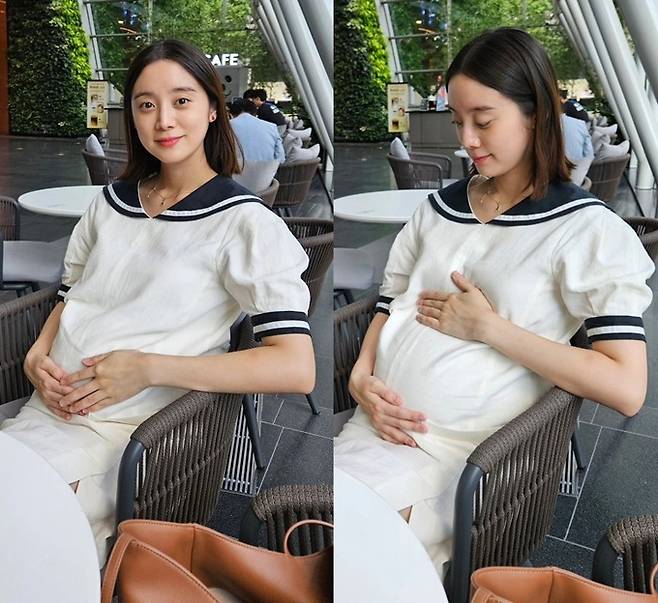 공개한 사진에서 우혜림은 배가 볼록 나온 D라인에도 불구하고 블랙 케이프가 눈에 띄는 프레피 스타일의 화이트 케이프 원피스 임신부룩으로 초동안 미모를 드러냈다.