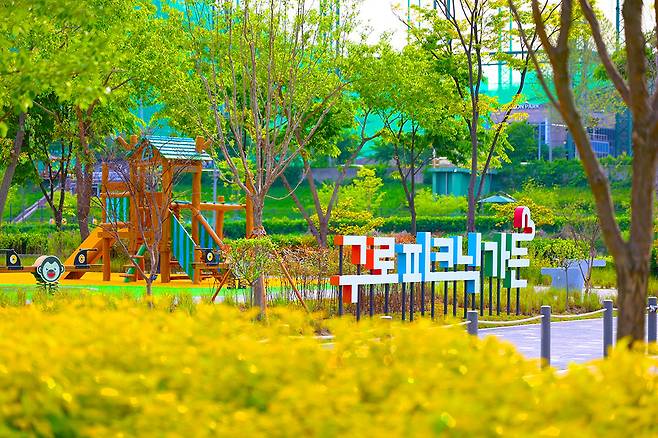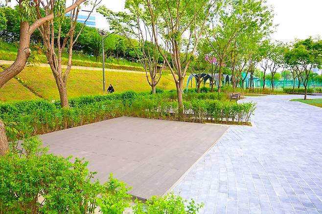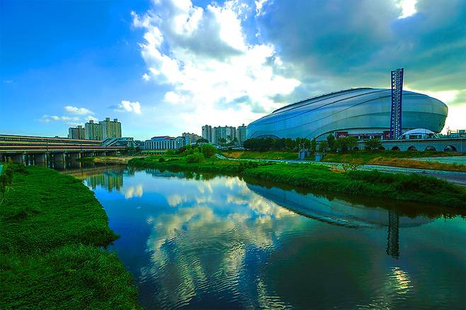 맑은 물줄기가 흐르고 넓게 펼쳐진 녹지 공간이 조성되어 있어 산책을 즐기거나 자전거를 타기에도 최적의 장소입니다.