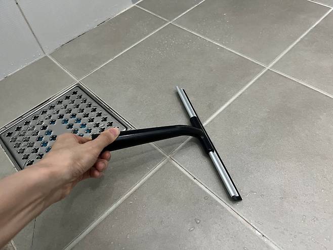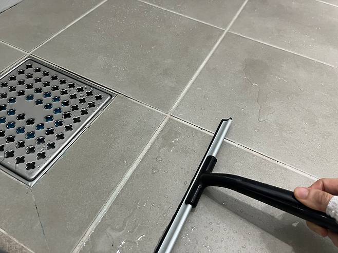힘주어 닦을 필요도 없이, 살짝 밀어내는 것만으로도 충분합니다. 스퀴지로 간단히 물기를 제거하면 물 고임이 줄어들어 곰팡이 발생도 억제됩니다.