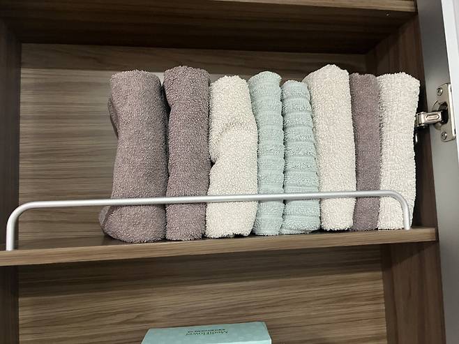 습한 여름철에는 새 수건 또는 사용했던 수건 모두 욕실 내부보다는 바깥에 보관하는 것이 좋습니다. 습하고 통풍이 어려워, 욕실 내부에 두면 곰팡이와 세균이 쉽게 번식할 수 있습니다.