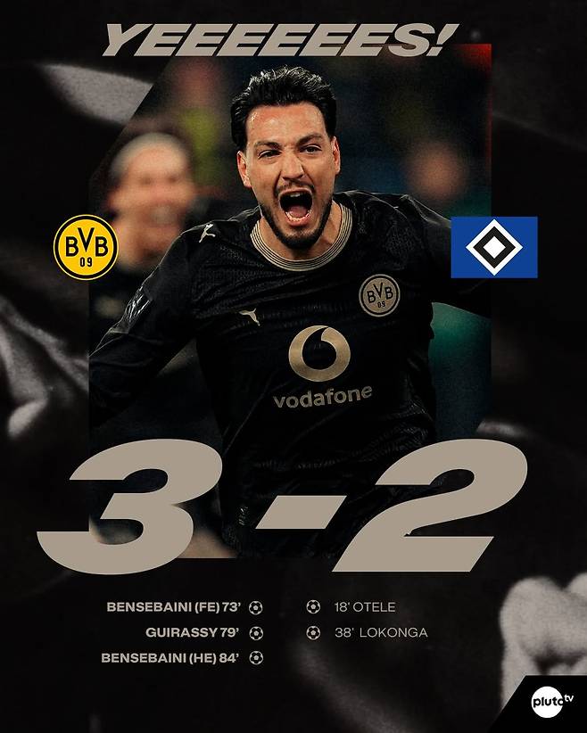 보루시아 도르트문트가 A매치 휴식기를 3연승으로 맞이하게 됐다. 도르트문트는 분데스리가 27라운드에서 전반을 0-2로 뒤진 채 마쳤지만, 후반 라미 벤세바이니의 페널티킥 두 골과 세루 기라시의 득점을 앞세워 함부르크를 3-2로 꺾는 극적인 역전승을 거뒀다. 이로써 도르트문트는 리그 2위 자리를 더욱 굳건히 했다.