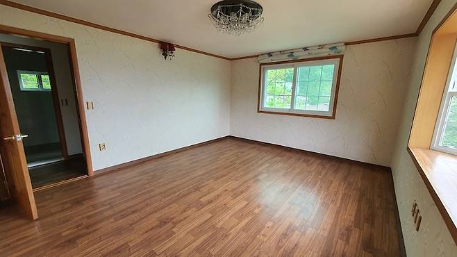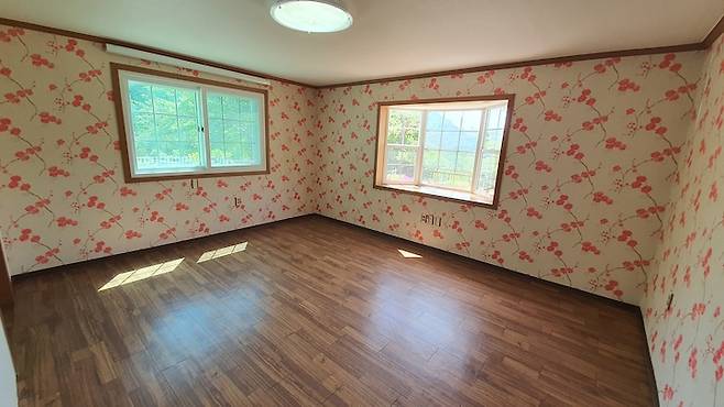 부모님이 지내시는 안방의 비포 모습이에요. 여기도 마찬가지로 강렬한 꽃무늬 벽지로 도배되어 있었어요. 심지어 위와 아래, 창문의 몰딩 색이 모두 다른 유니크한 인테리어...