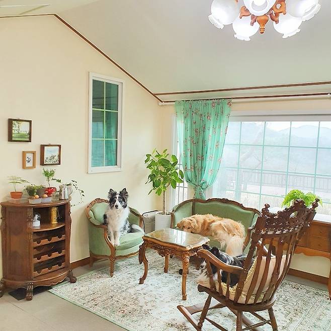 첫 번째 장점은 넓은 마당이었어요. 세 마리의 강아지가 함께 살고 있기 때문에, 강아지들이 언제든 마음껏 뛰어놀 수 있는 마당이 필요했어요. 이 집은 사람이 뛰기도 힘들 만큼 마당과 정원이 넓어서, 그 점이 정말 마음에 들었답니다.