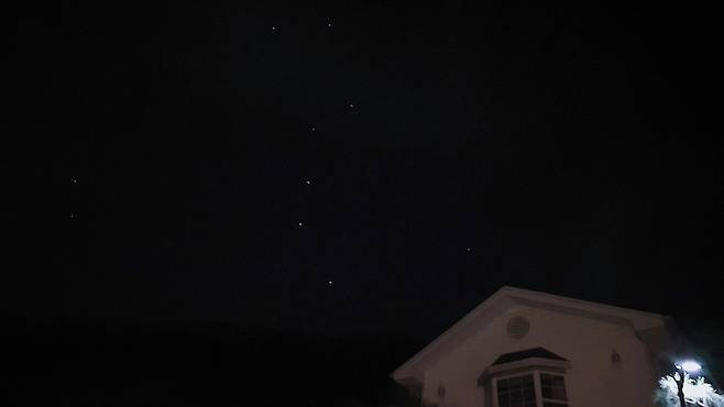 밤이면 별자리를 볼 수 있다는 것도 시골집의 장점이에요. 이날은 정말 별이 쏟아질 듯 많았는데, 핸드폰 카메라로는 이 정도가 최선이었어요...ㅎ 그래도 선명한 북두칠성이 보이시나요?