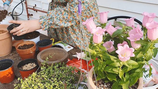 이 집에 온 후로 새롭게 생긴 취미가 있다면, 바로 가드닝이에요. 식물이 자라는 모습을 지켜본다는 게 생각보다 즐거운 일이더라고요. 빈티지한 야외용 테이블을 데크에 두고 그 위에서 식물을 돌본답니다.
