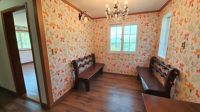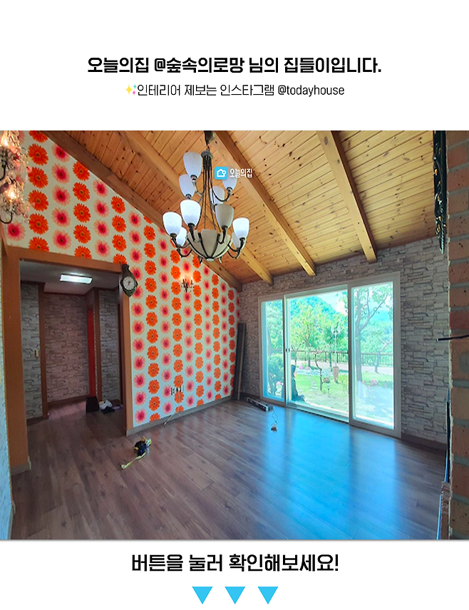 이 집의 가장 큰 문제는 이렇게 엄청나게 촌스러운 벽지와 인테리어였어요. 전에 살던 분이 굉장히 화려한 취향을 갖고 계셔서 각종 꽃무늬 벽지로 가득했어요.