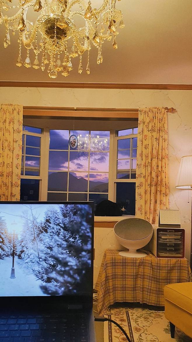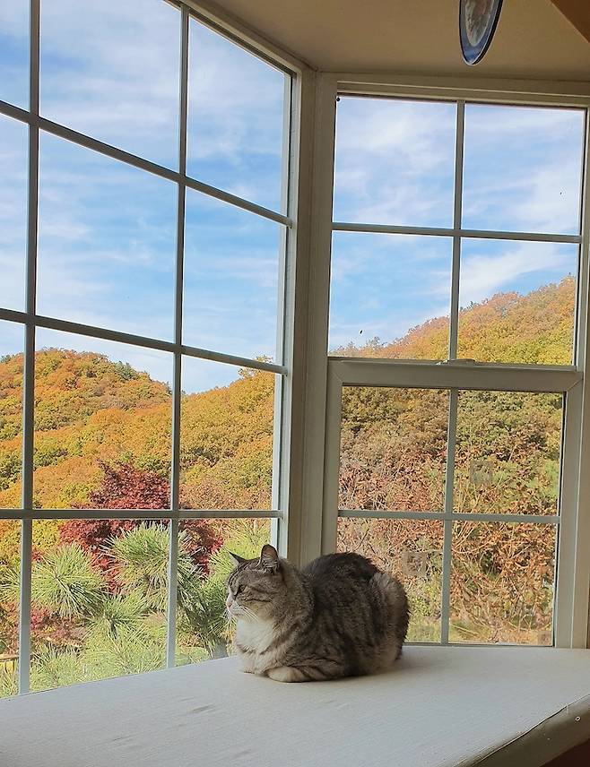 큰 창을 통해 계절의 변화를 한눈에 볼 수 있다는 게 참 좋아요. 초록빛 산이 단풍으로 물들다가 하얗게 뒤덮이는 모습을 1년 내내 방에서 감상할 수 있으니까요. 덕분에 단풍놀이를 갈 필요가 없어졌어요.