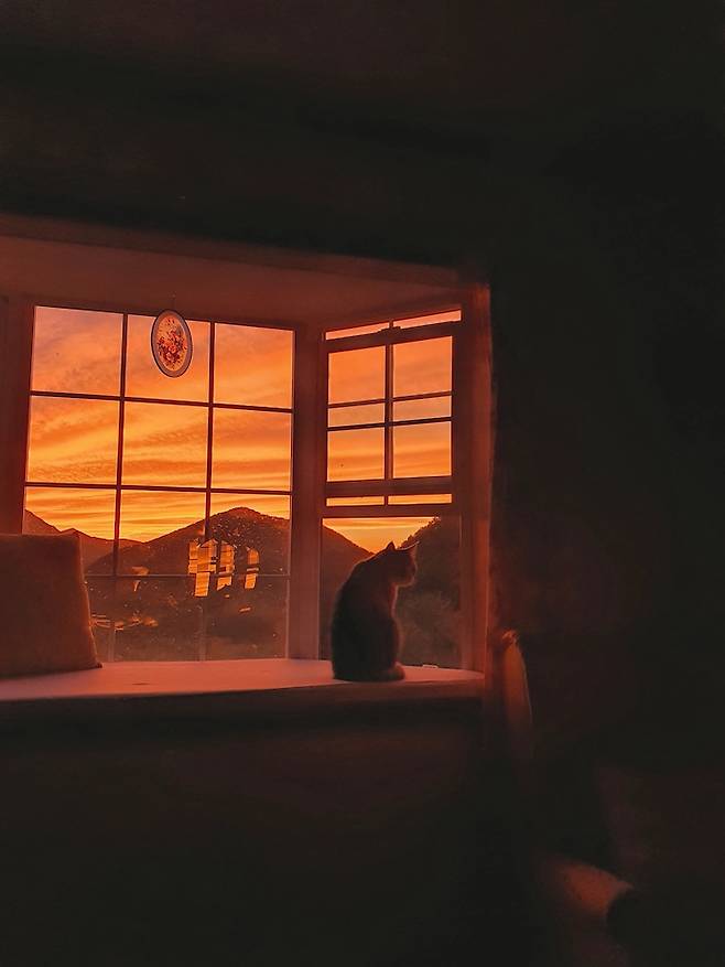 가끔 신기할 정도로 노을이 붉은 날이 있는데요! 그럴 땐 온 방안이 빨갛게 물들어요. 정말 비현실적인 풍경이죠!